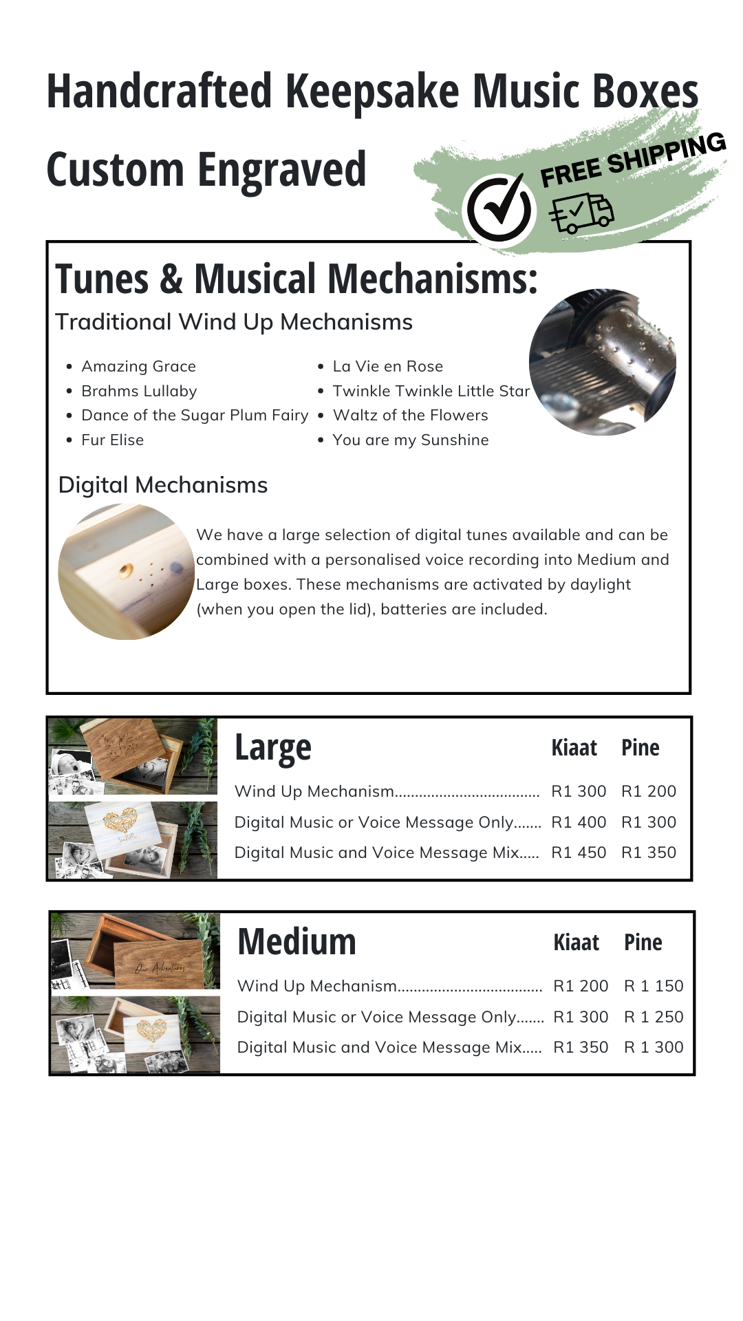 Handcrafted Keepsake Music Boxes | Pine or Kiaat | Digital Mechanism | Free Delivery